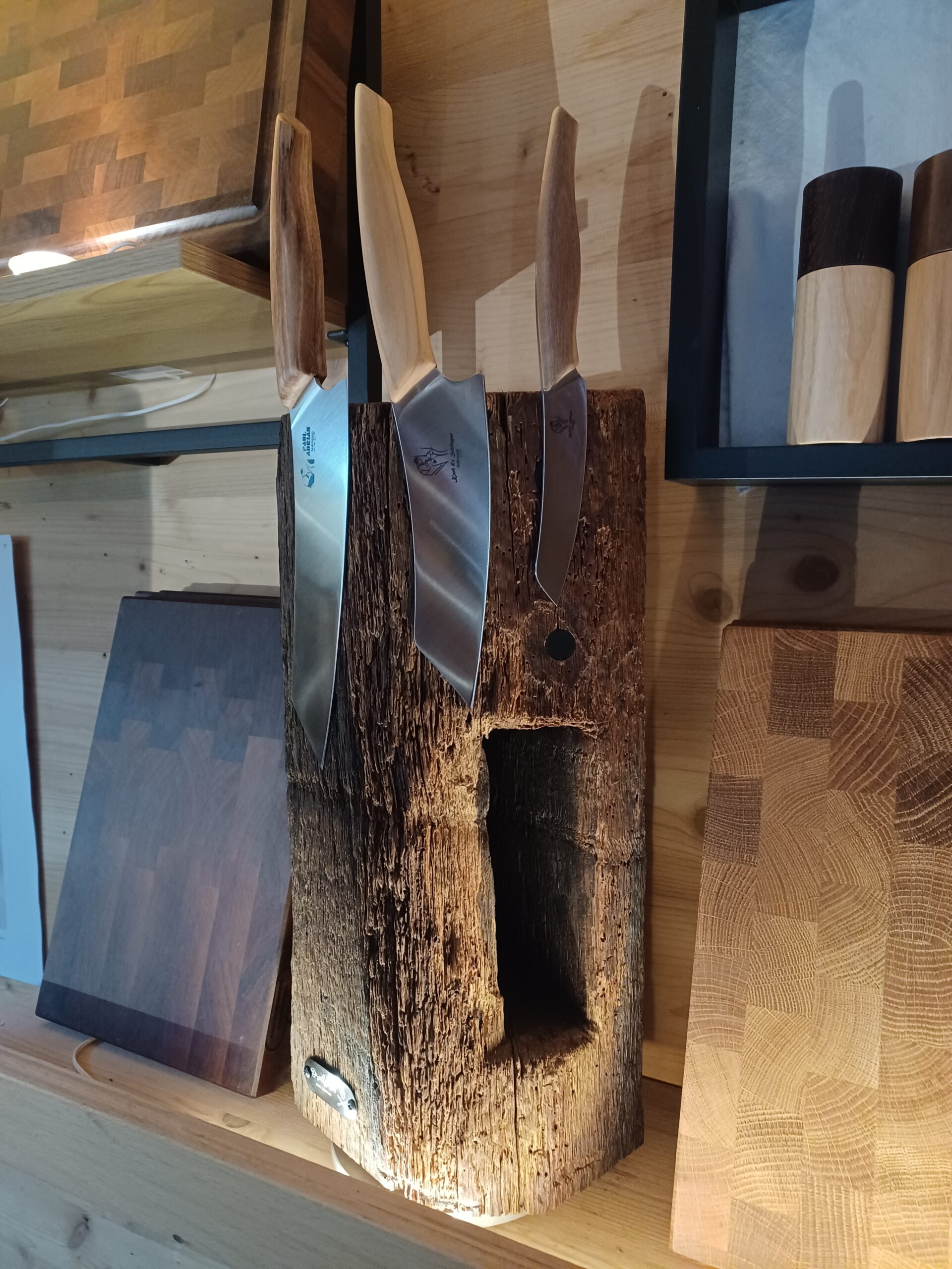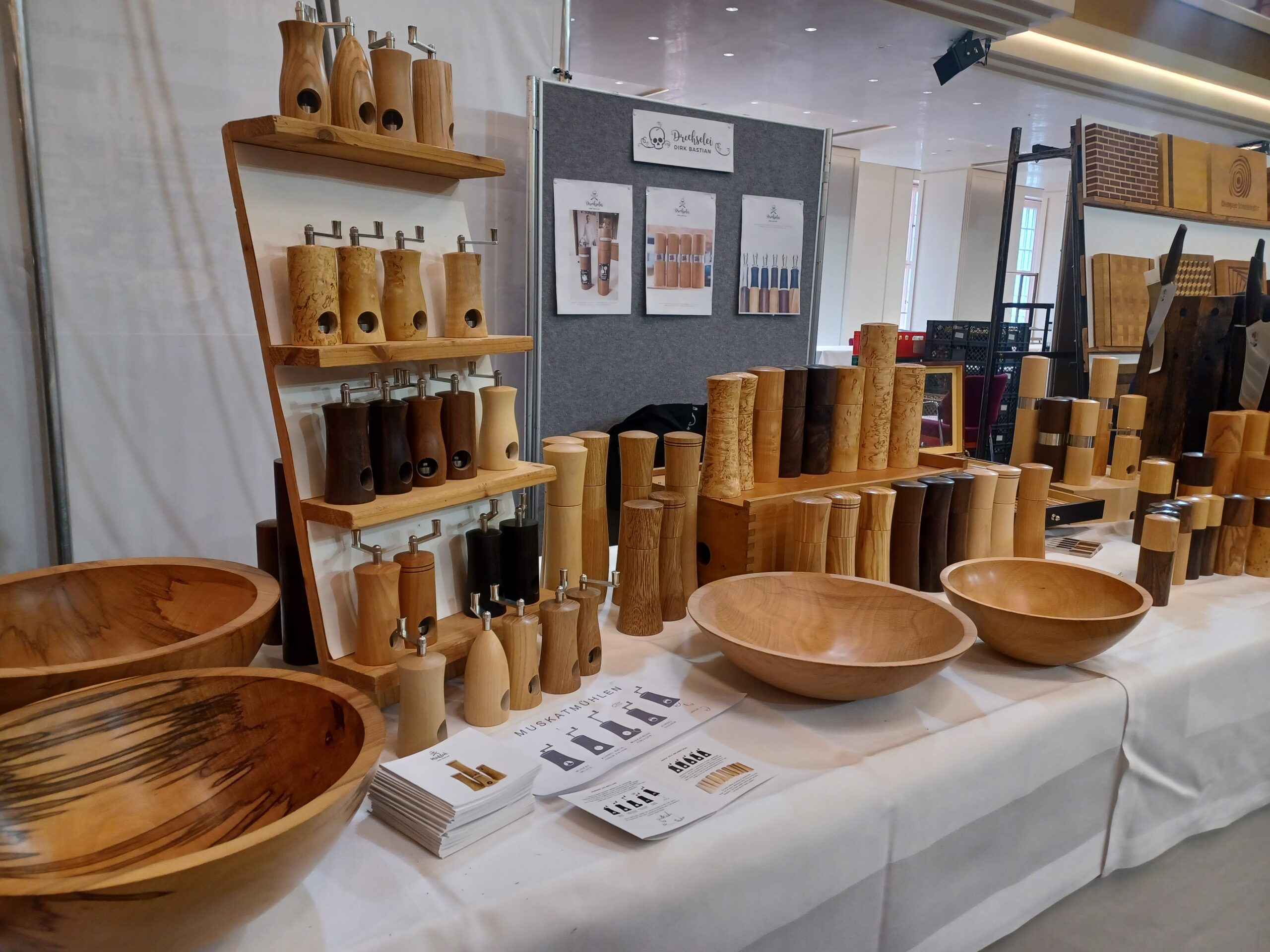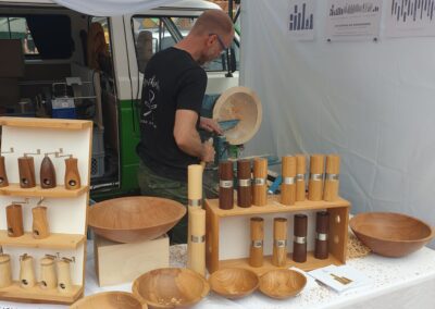 Handgefertigte Alltagsschätze aus Holz: Gewürzmühlen für Pfeffer, Salz und Muskatnuss Schalen aus Holz vom Donnersberg Schreibgeräte: Füller, Rollerballs, Kugelschreiber und Skizzenstifte Messerblöcke aus alten Eichenbalken, drehbar, mit Magneten