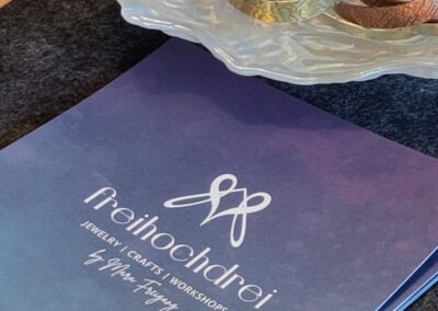Meine Arbeiten zeichnet sich durch filigrane organische Formen, fließende Linien und eine starke Nähe zu Natur und Vintage aus. In vielseitigen Workshopangeboten, die ich auch mobil im Rhein-Main-Gebiet anbiete, kannst du selbst in die kreative Welt von freihochdrei eintauchen und erleben wie echte Unikate mit persönlichem Bezug und Tiefe entstehen.