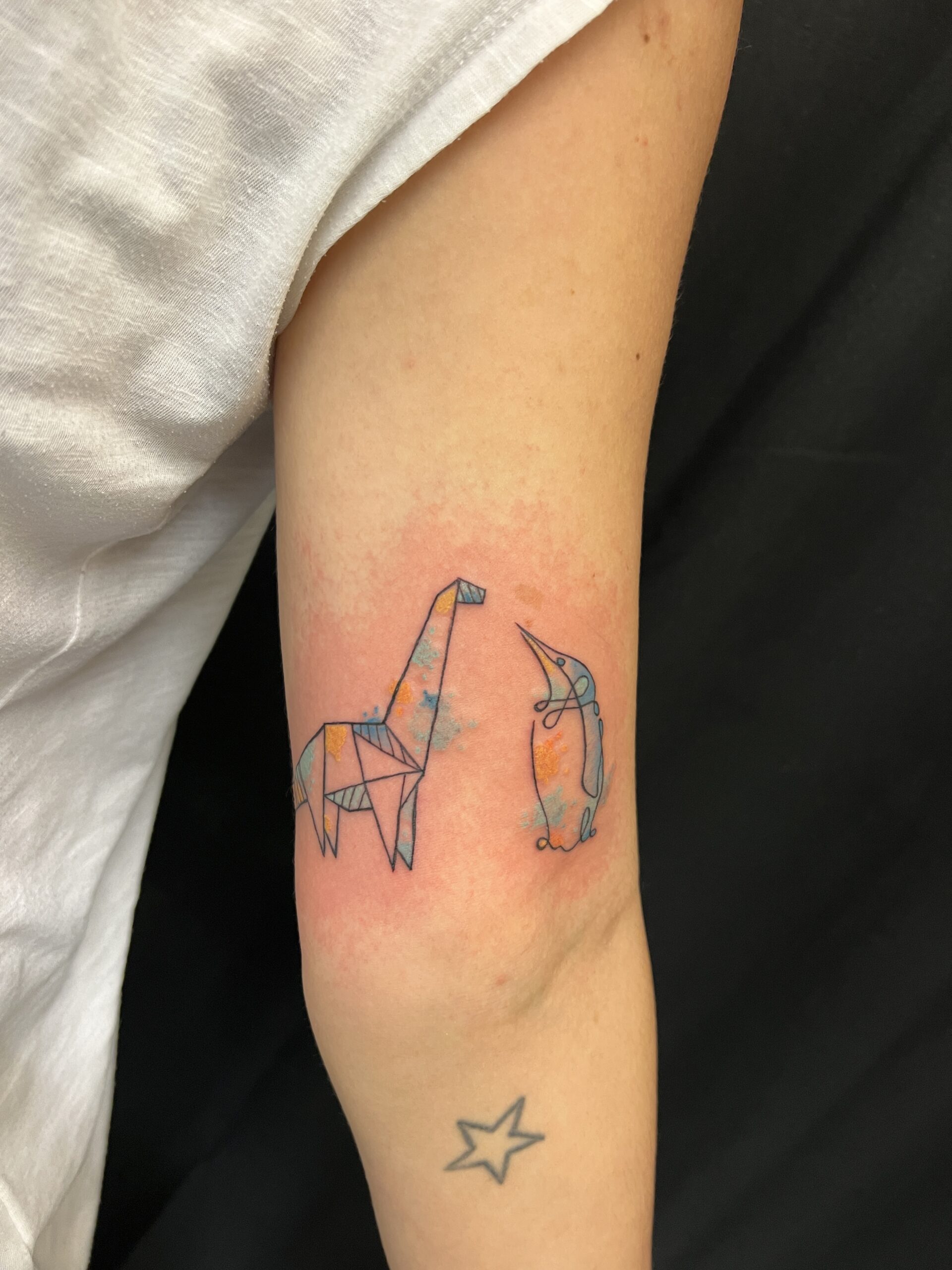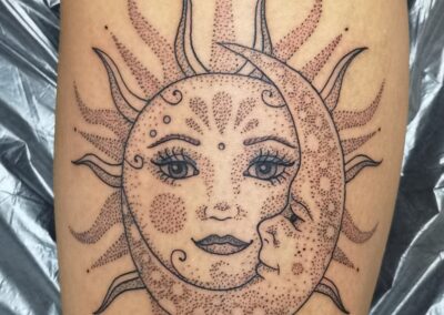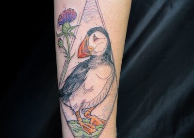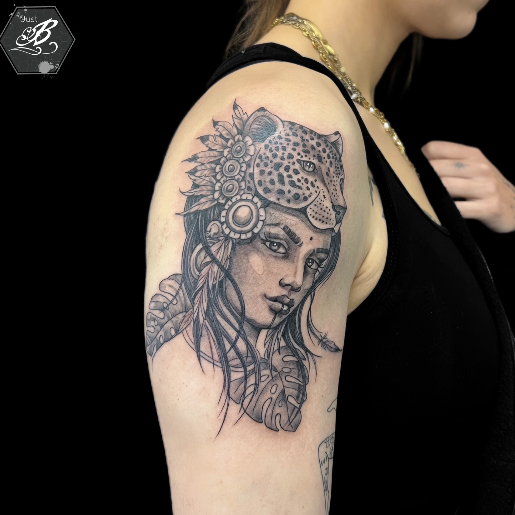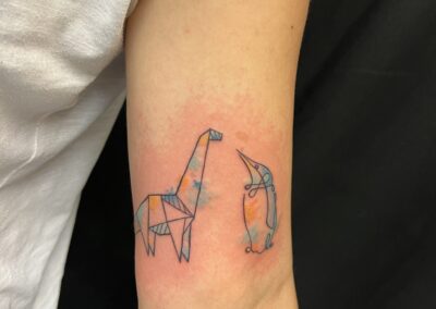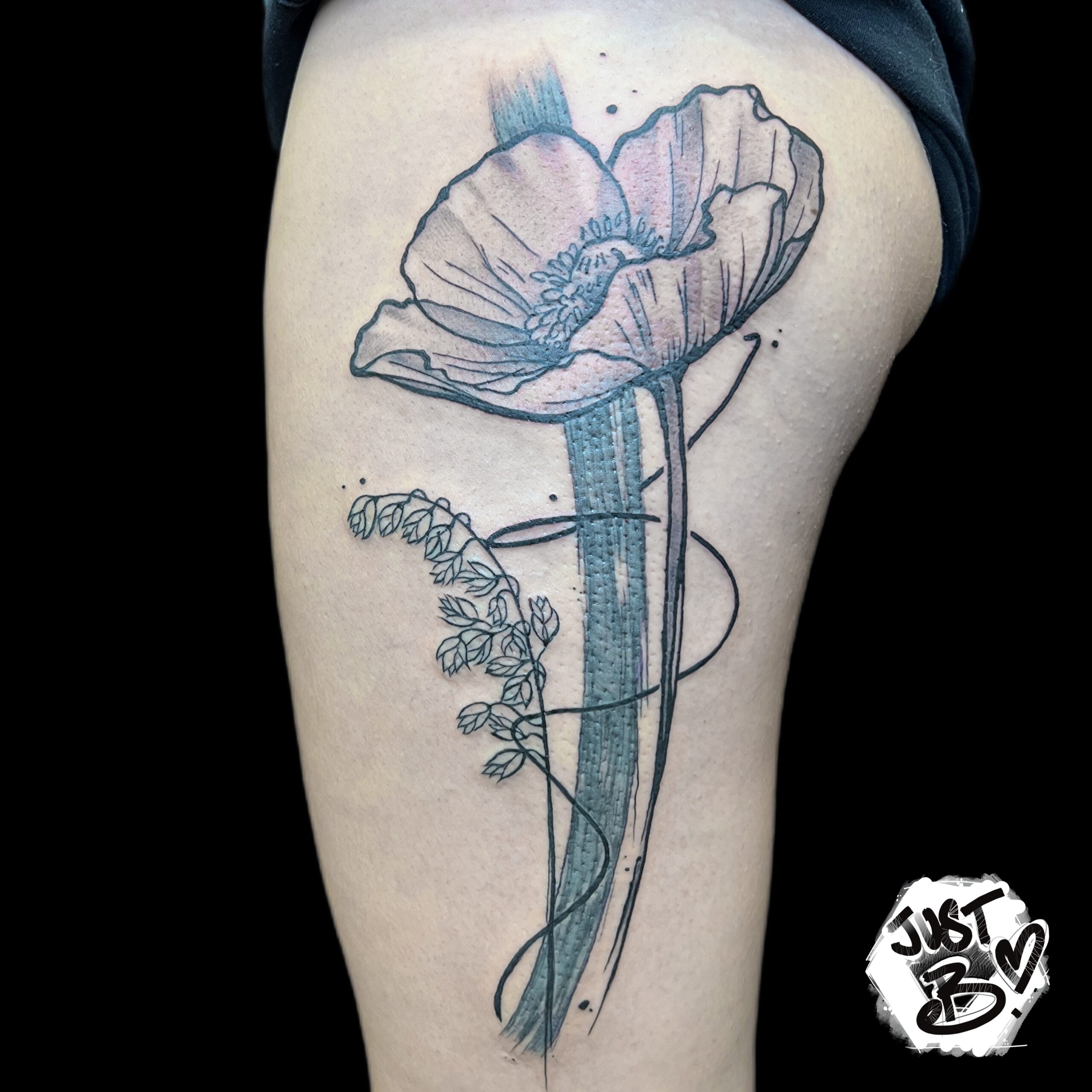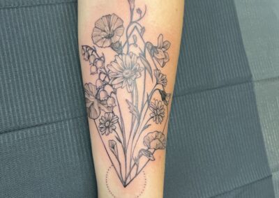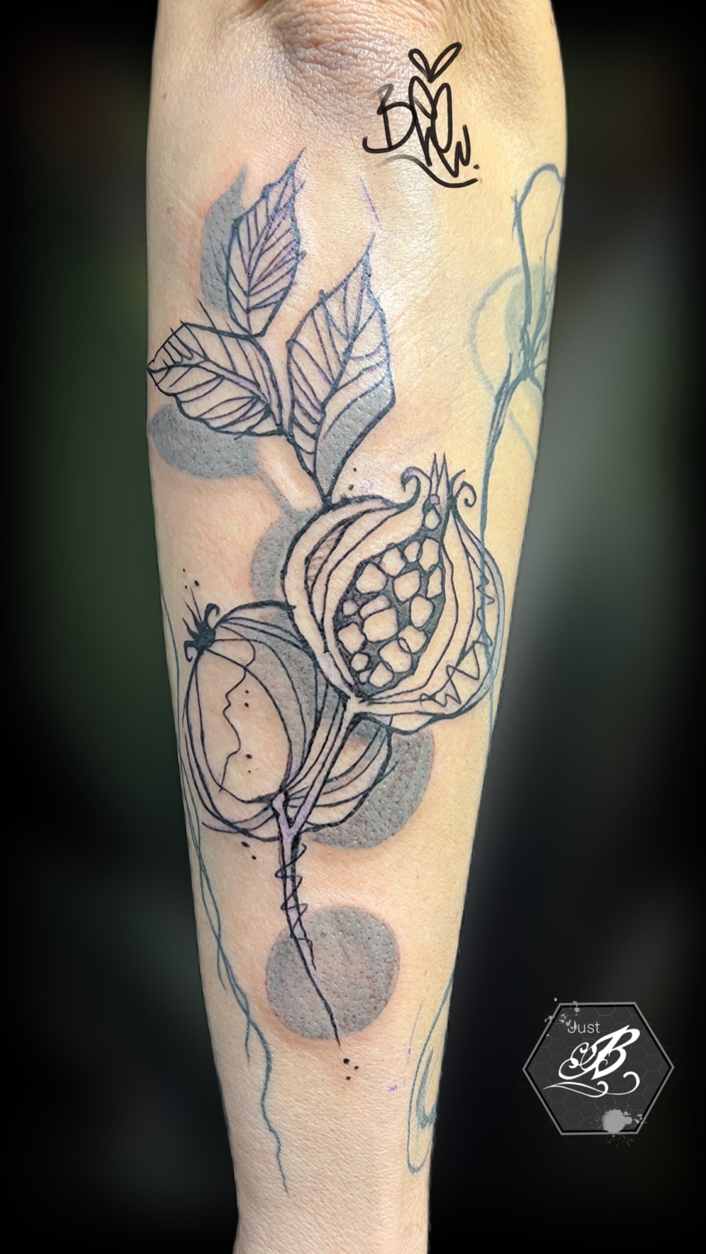 Ich steche am liebsten scribbly Tattoos, Geometrie, Flora & Fauna und alle Kombinationen davon. Seit 2013 betreibe ich mein kleines Studio ‚just B Tattoos‘ im Herzen der Heidelberger Altstadt. Meine Designs entwerfe ich direkt am Termin mit den Kund:innen zusammen, ich mag den Flow und das gemeinsame Arbeiten am Entwurf.